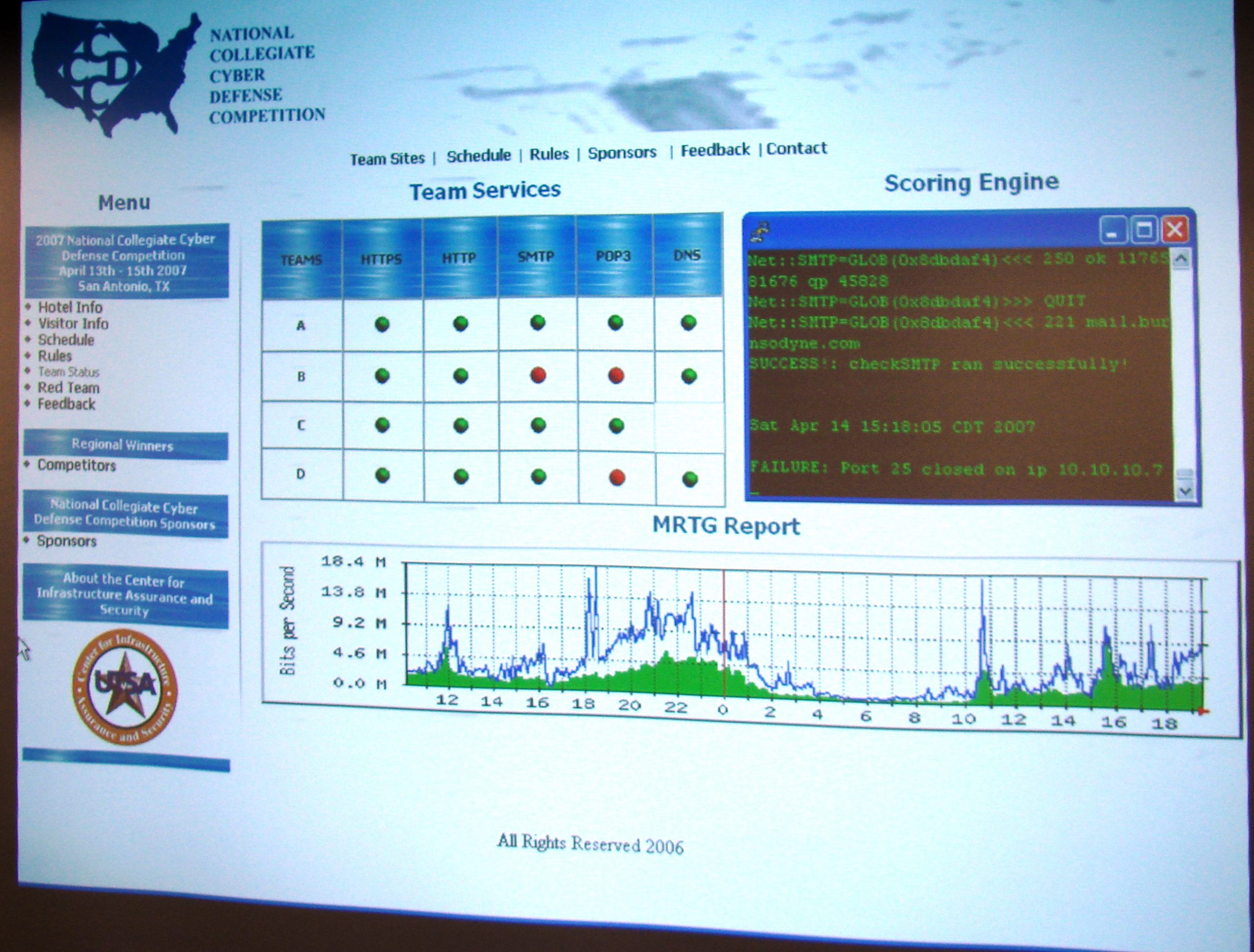 The CCDC is unique because it focuses on the operational aspect of managing and protecting an existing network infrastructure. Other exercises examine the abilities of a group of students to design, configure, and protect a network over the course of an entire semester; however, this competition is focused on the more operational task of assuming administrative and protective duties for an existing “commercial” network.
