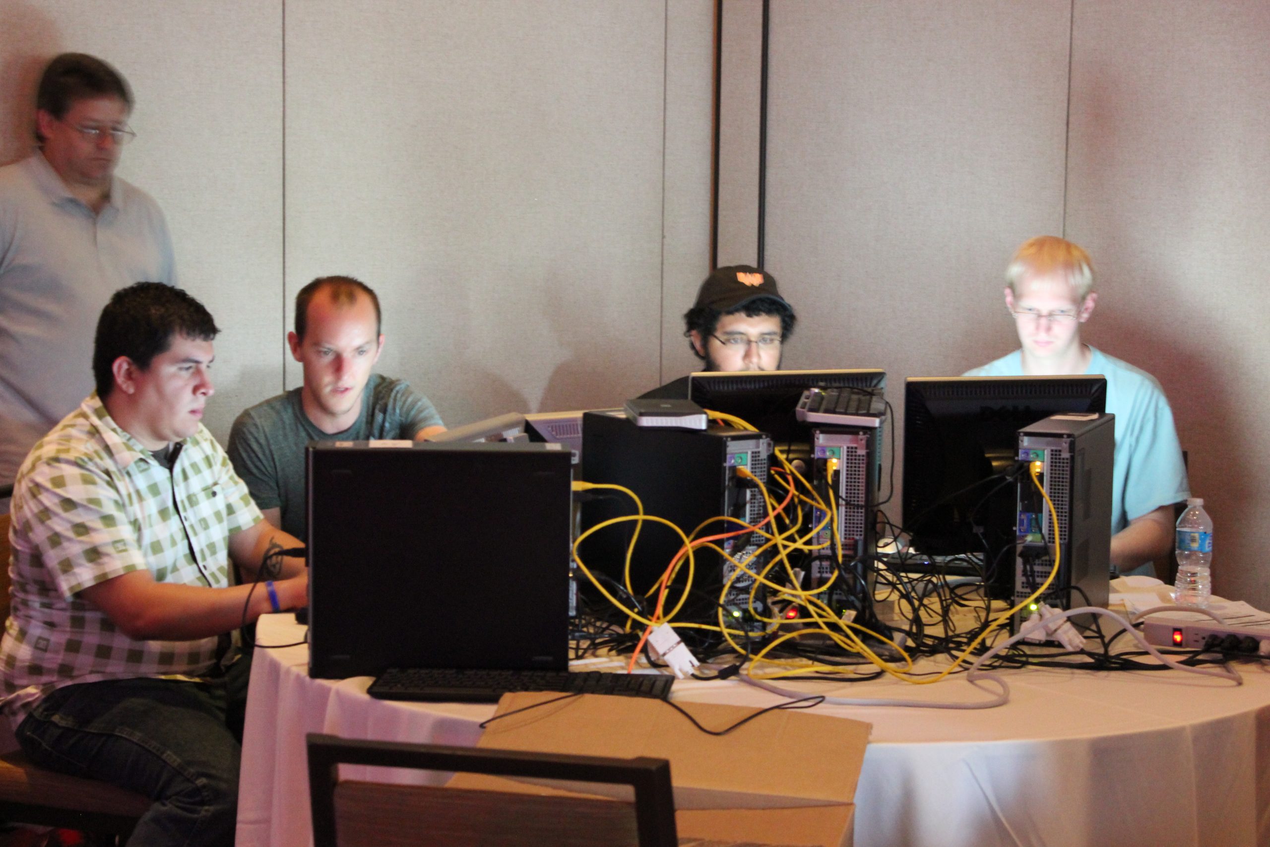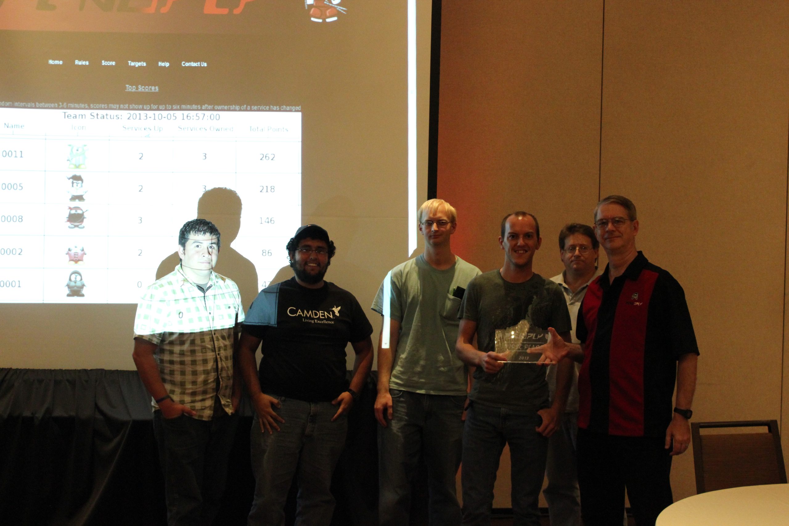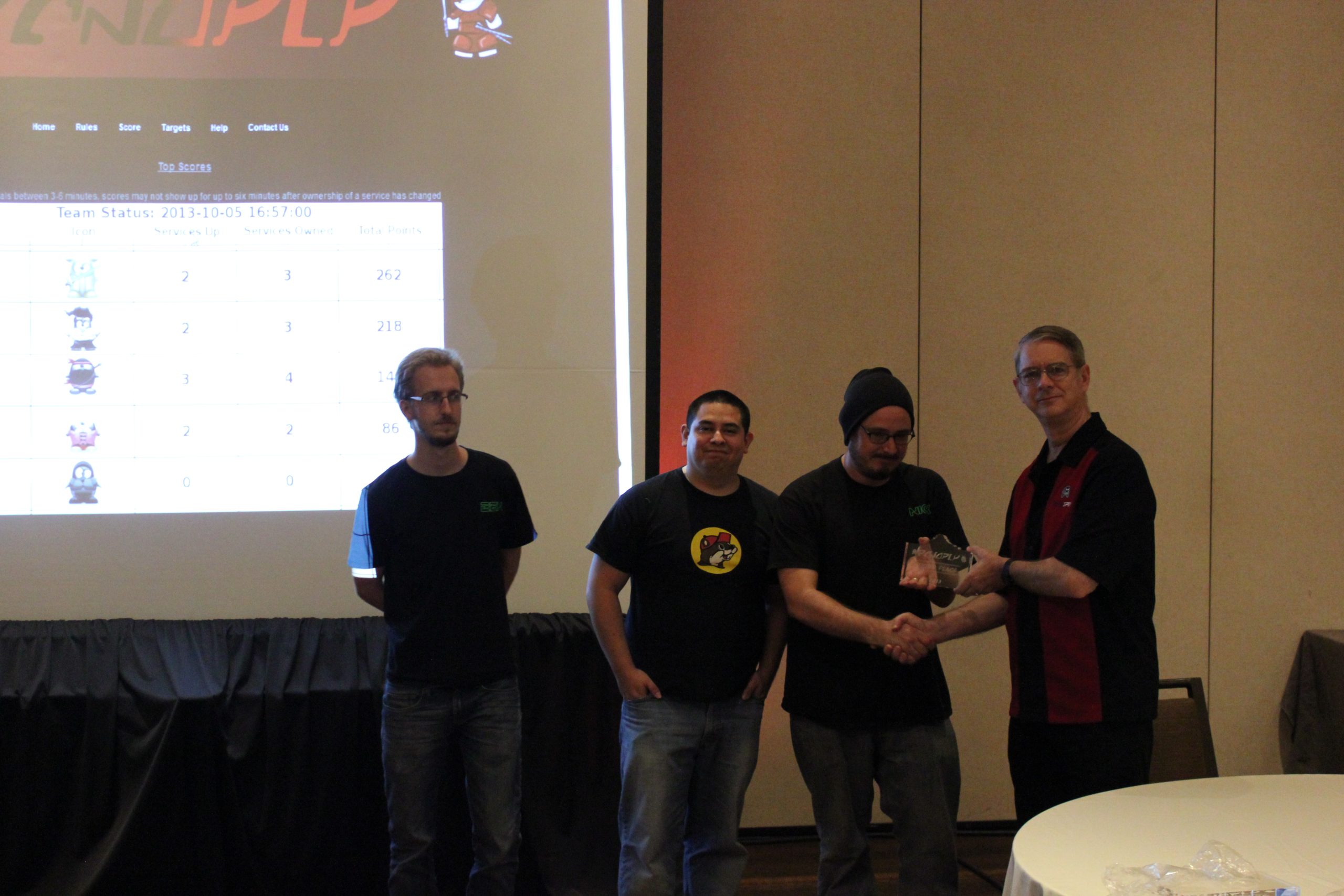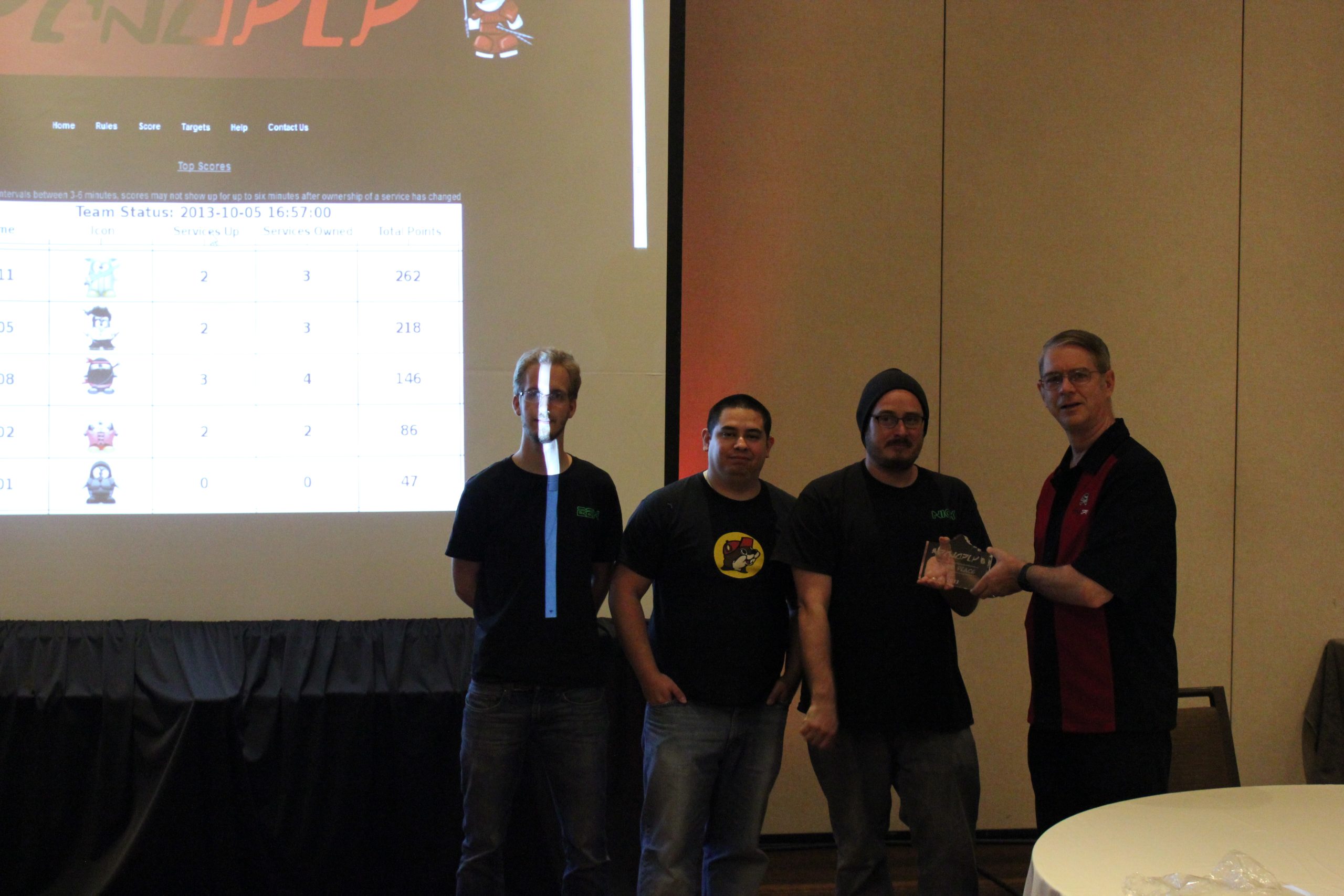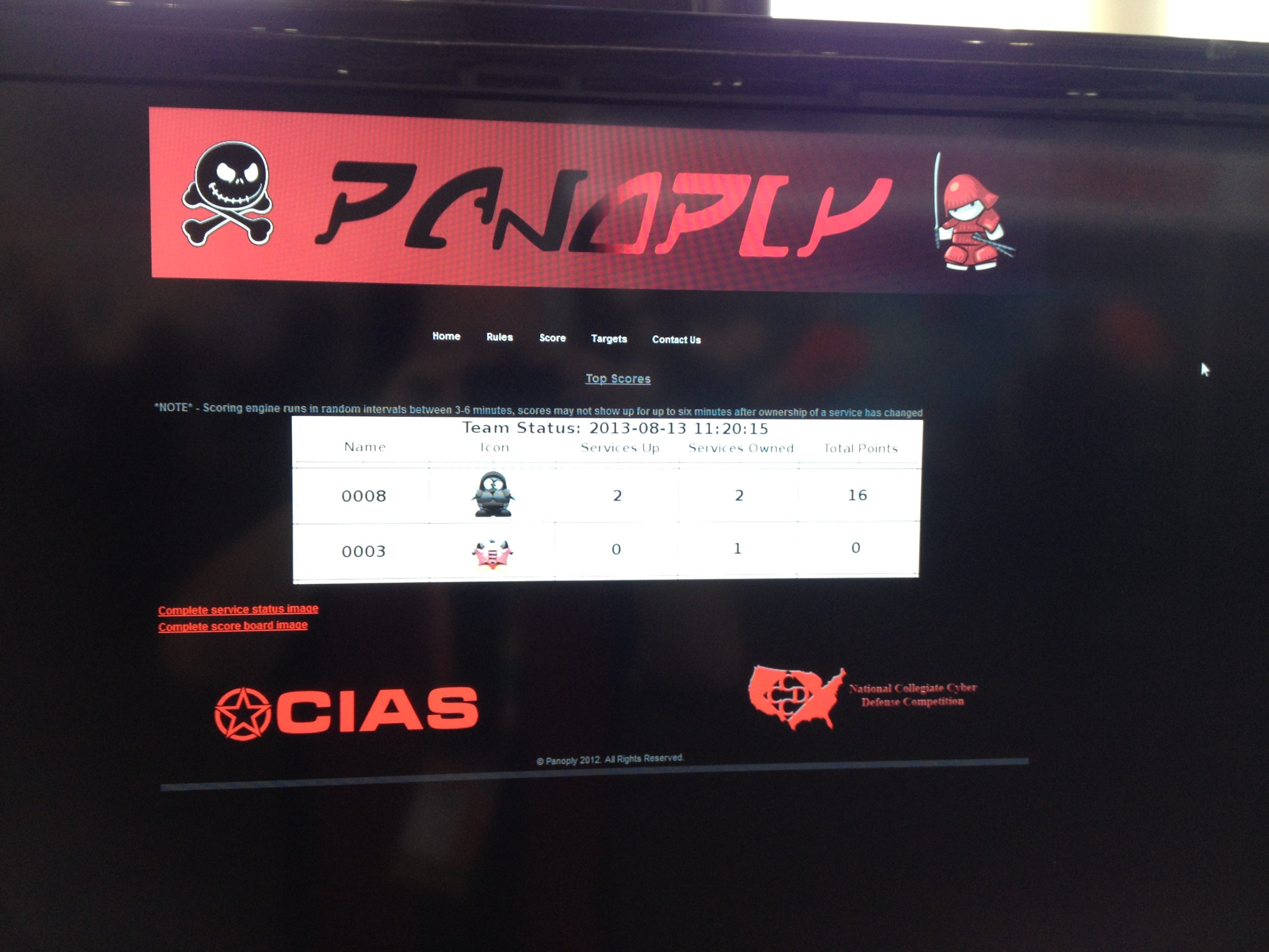 At random intervals, an automated scoring engine checks the status and functionality of all critical services. If a team has ownership of a functional critical service during a successful service check, that team is awarded points for owning and maintaining a critical service. Teams accumulate points for each critical service they control and continue to accumulate points as long as they own and maintain those critical services. Teams that fail to secure resources and services they have captured may have them taken away by rival teams.
