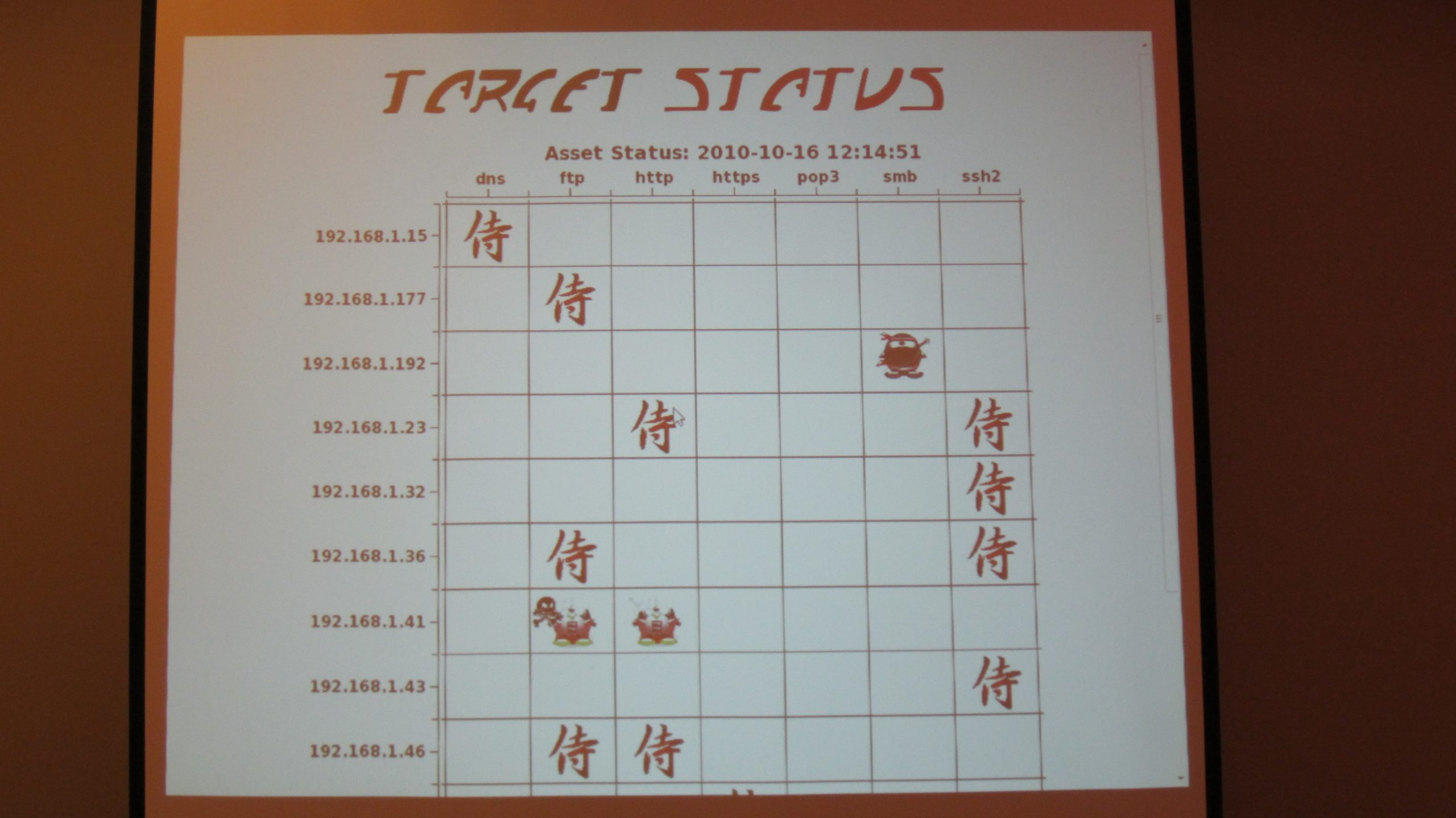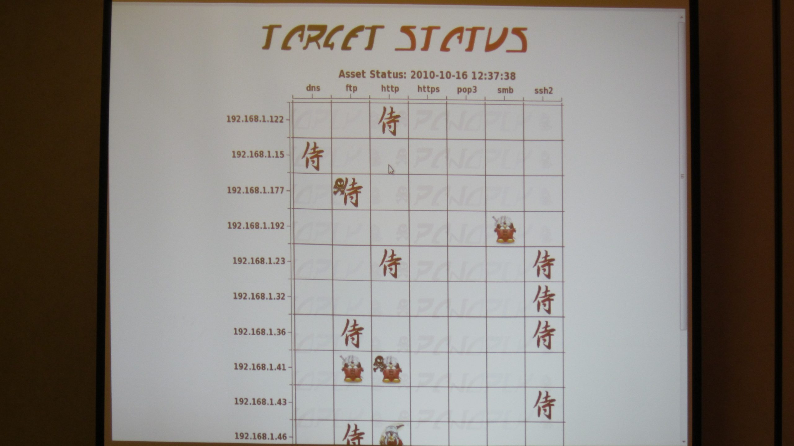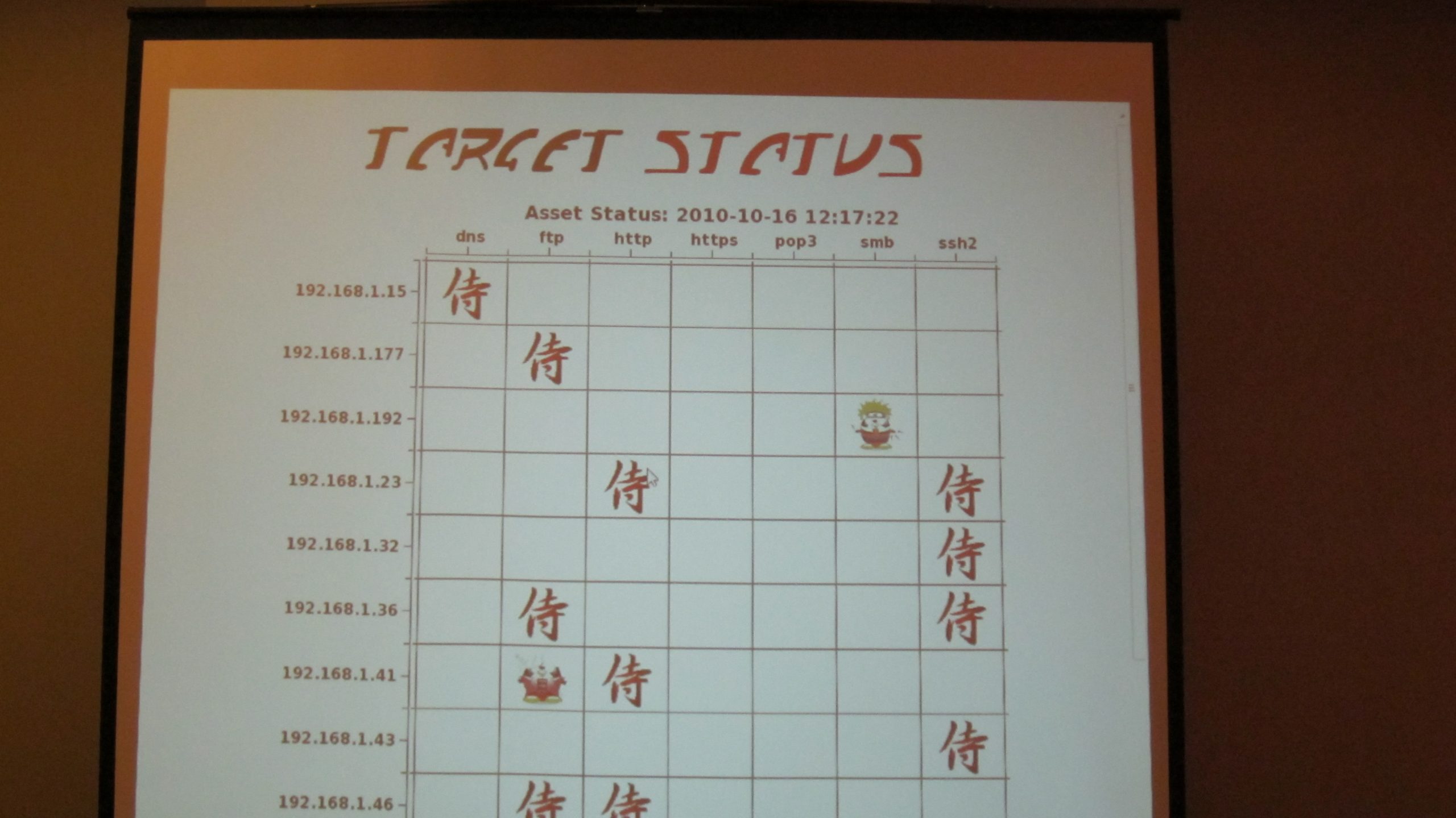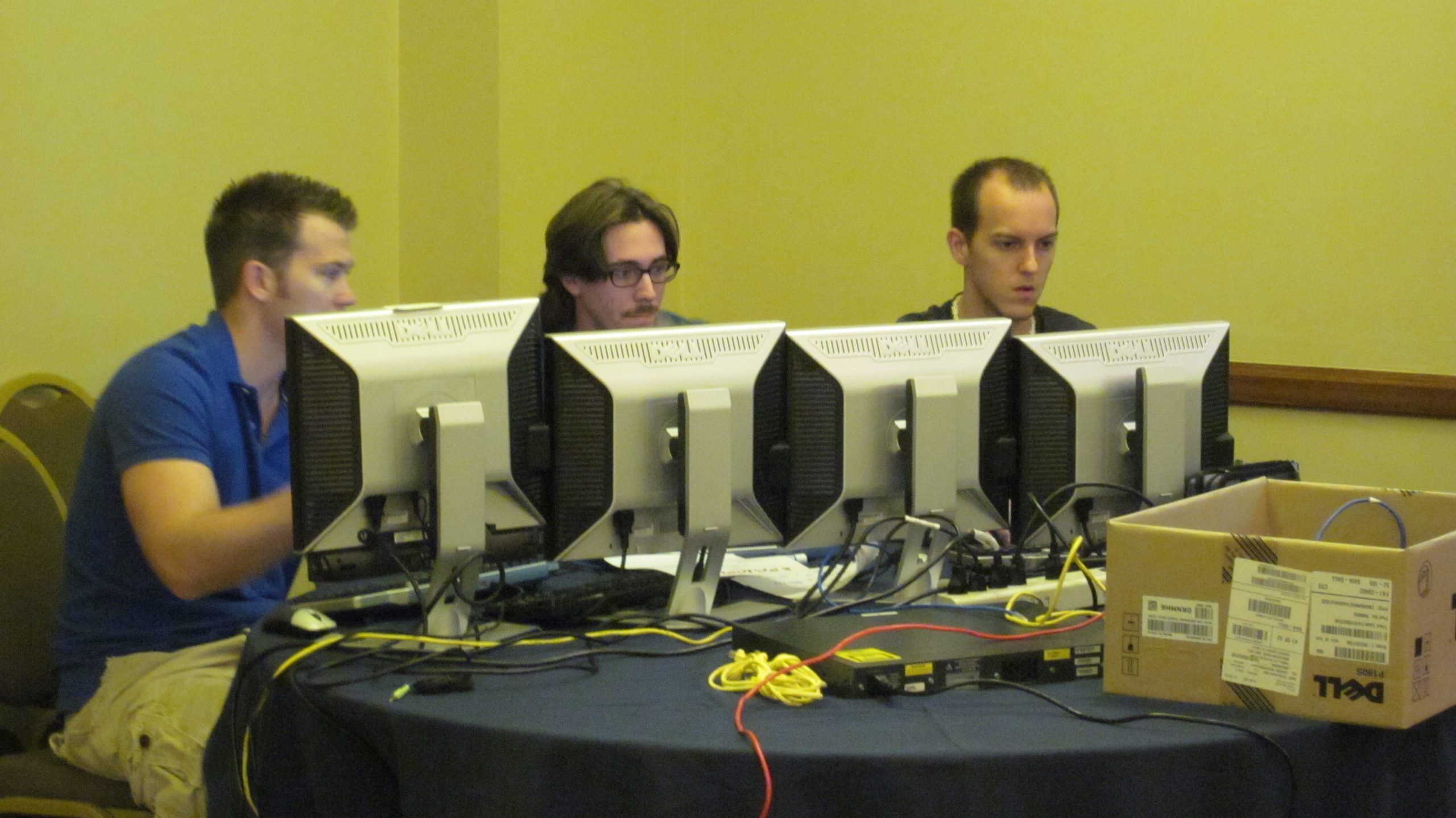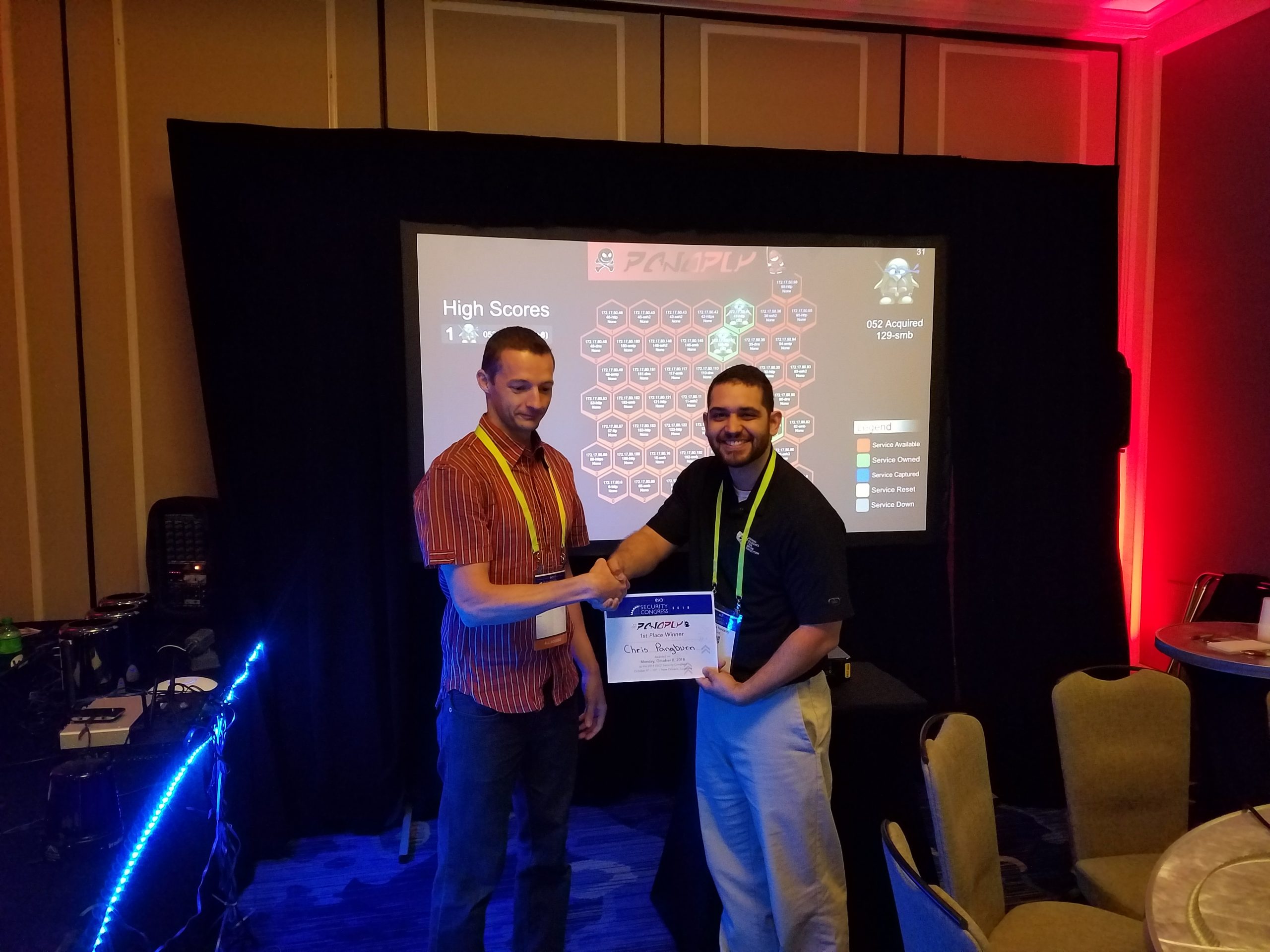 At random intervals, an automated scoring engine checks the status and functionality of all critical services. If a team has ownership of a functional critical service during a successful service check, that team is awarded points for owning and maintaining a critical service. Teams accumulate points for each critical service they control and continue to accumulate points as long as they own and maintain those critical services. Teams that fail to secure resources and services they have captured may have them taken away by rival teams.