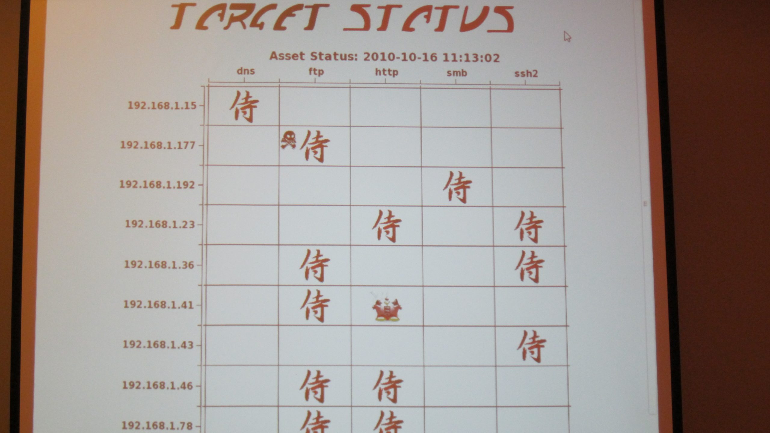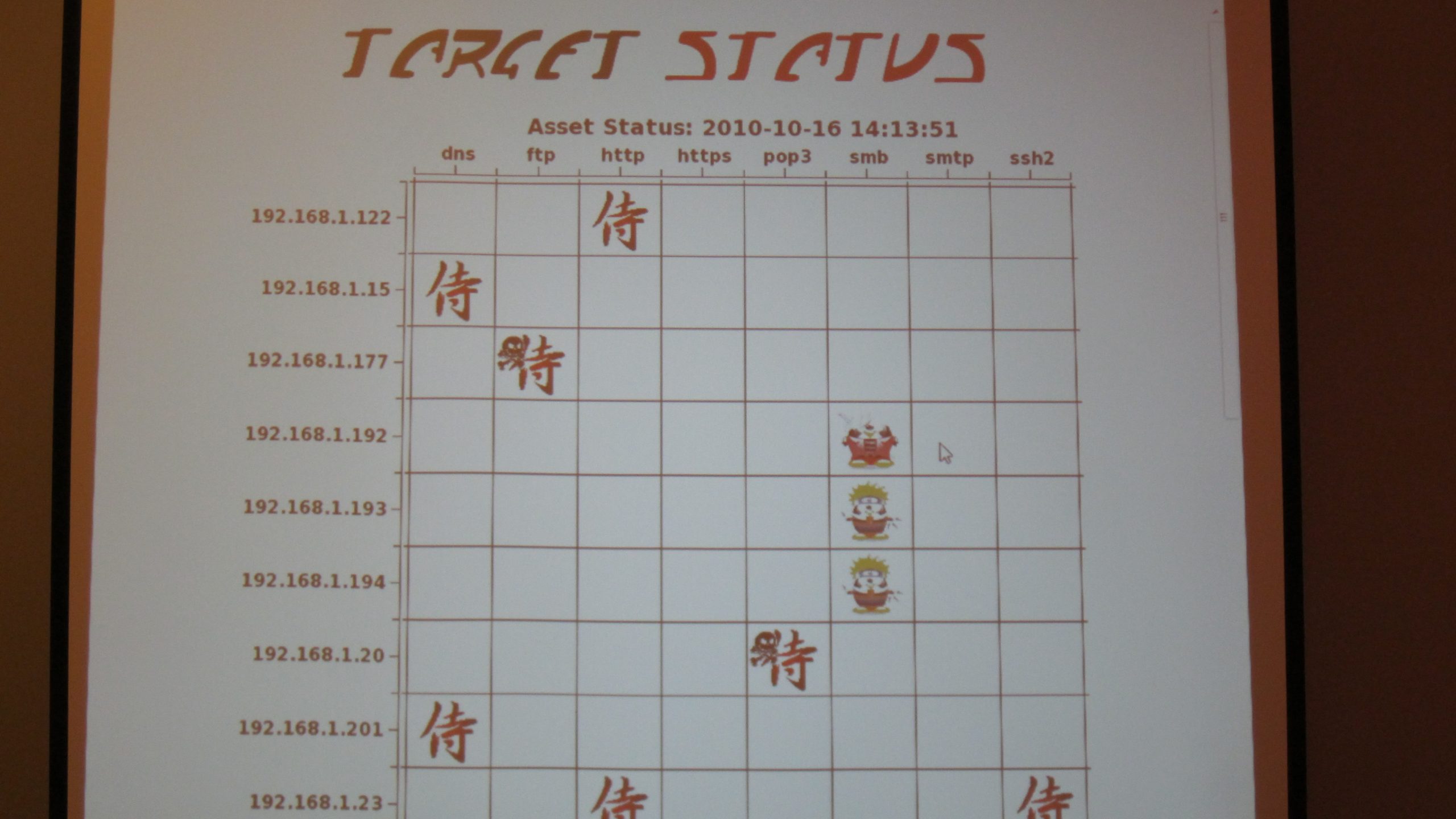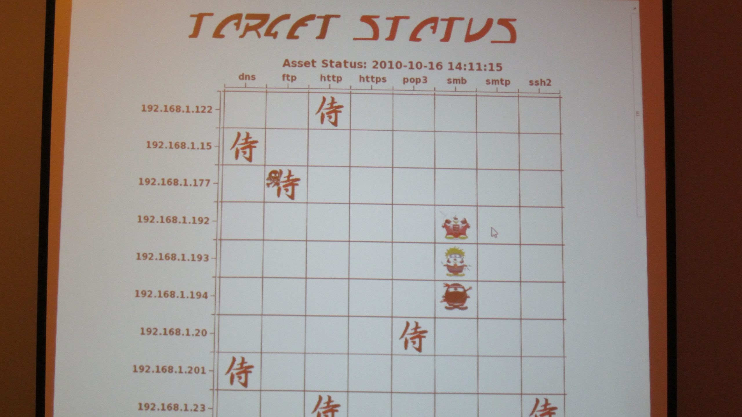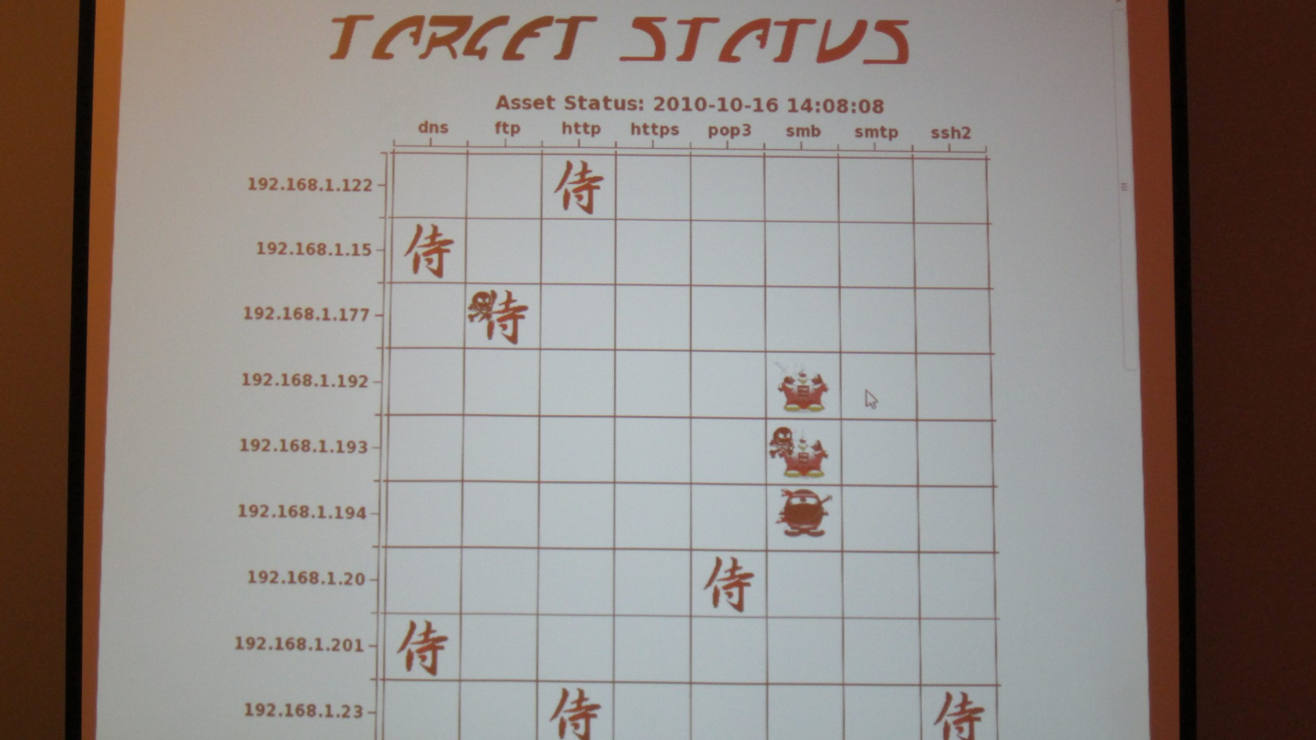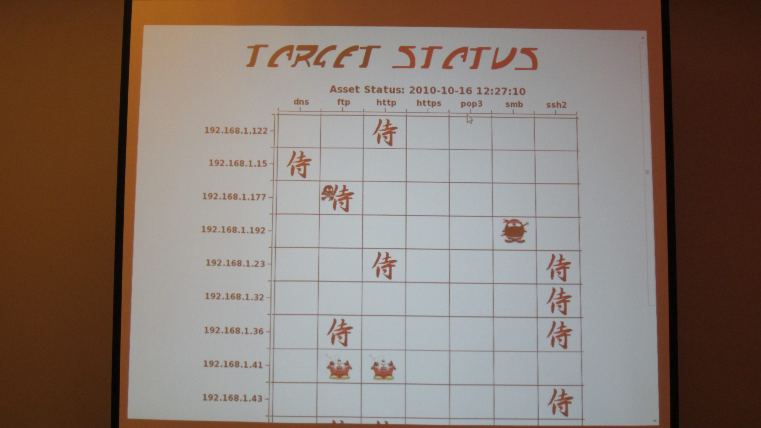 At random intervals, an automated scoring engine checks the status and functionality of all critical services. If a team has ownership of a functional critical service during a successful service check, that team is awarded points for owning and maintaining a critical service. Teams accumulate points for each critical service they control and continue to accumulate points as long as they own and maintain those critical services. Teams that fail to secure resources and services they have captured may have them taken away by rival teams.