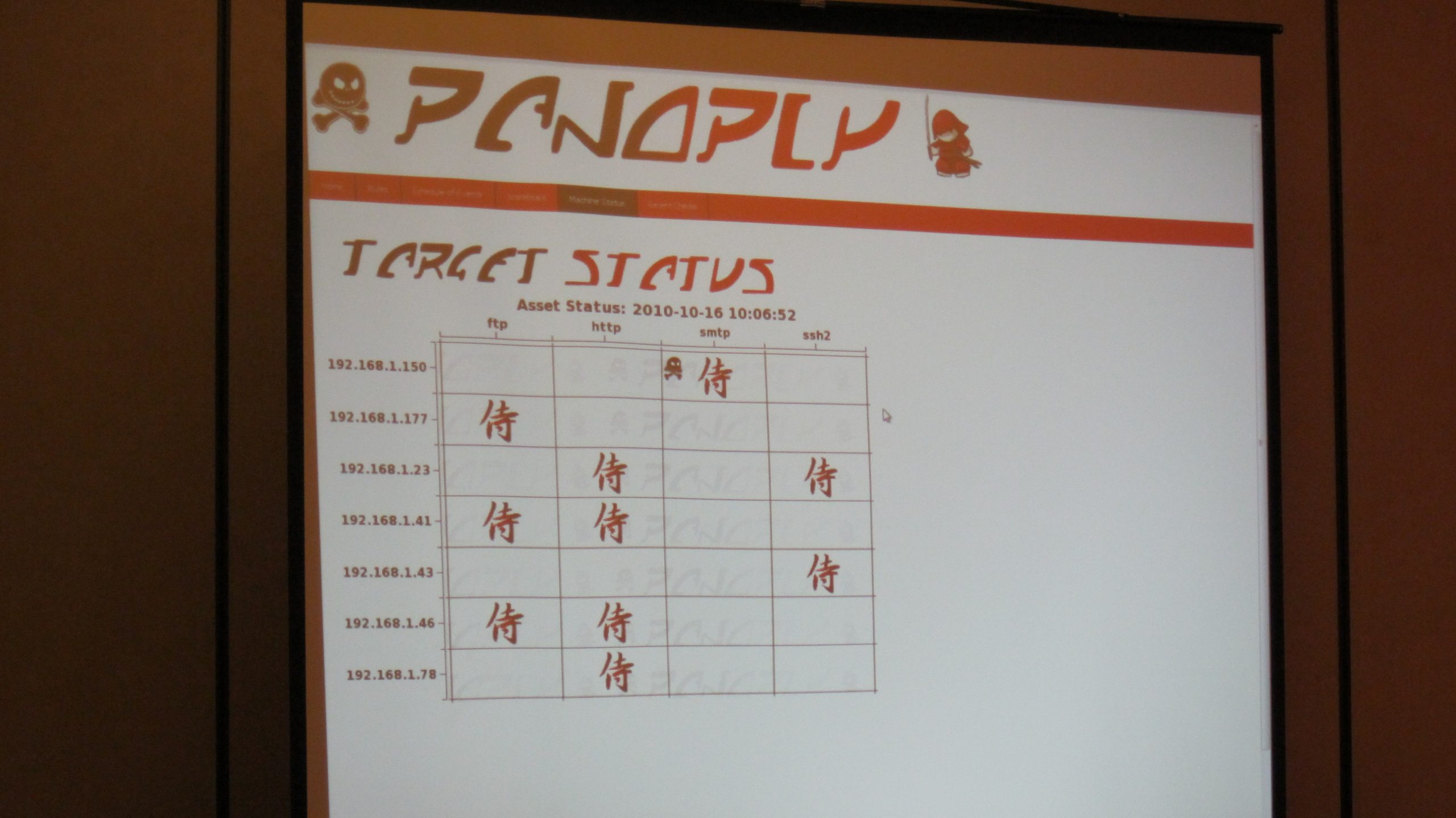 Panoply is a network assessment and network defense competition combined into a single event. Panoply events may be played as individual or team competitions. During Panoply, competitors vie for control of common resources and the critical services on those resources. Once a competitor takes possession of a resource, they must secure it against attacks from other players and maintain the critical services running on the resource. Competitors accumulate points for controlling and operating critical services such as SMTP, DNS, HTTP, HTTPS, SSH and so on.