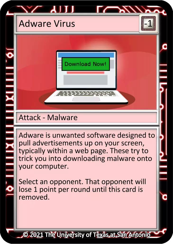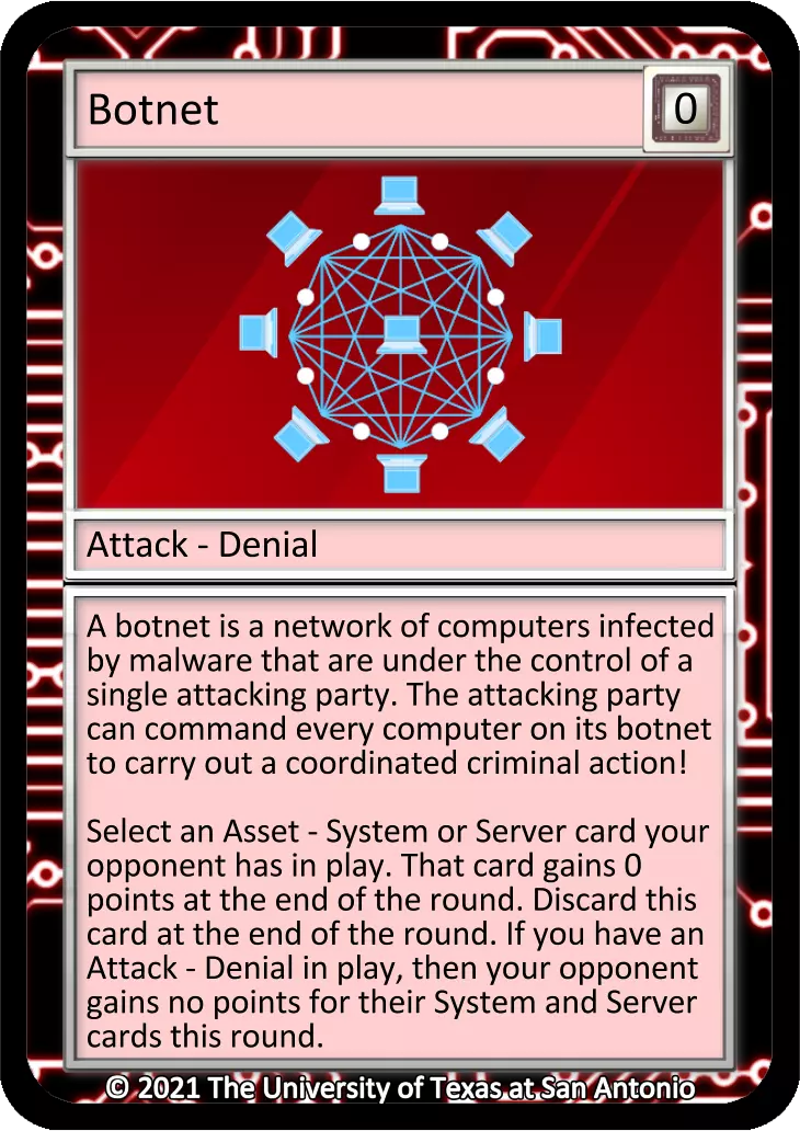 This contest is judged by the Cyber Threat Defender game developers and CIAS staff. Cards are judged on: