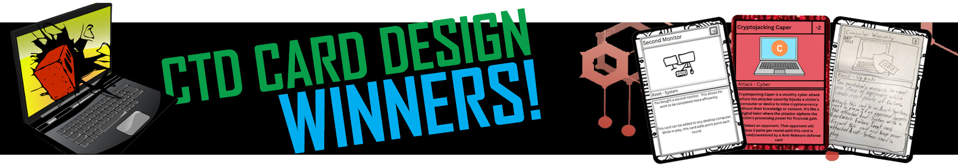 Note: The CIAS withholds the right to make any edits, corrections, updates to the winning design(s) of any card added to the Cyber Threat Defender inventory of cards within the Starter Deck, CTD: Digital or current/future booster packs.