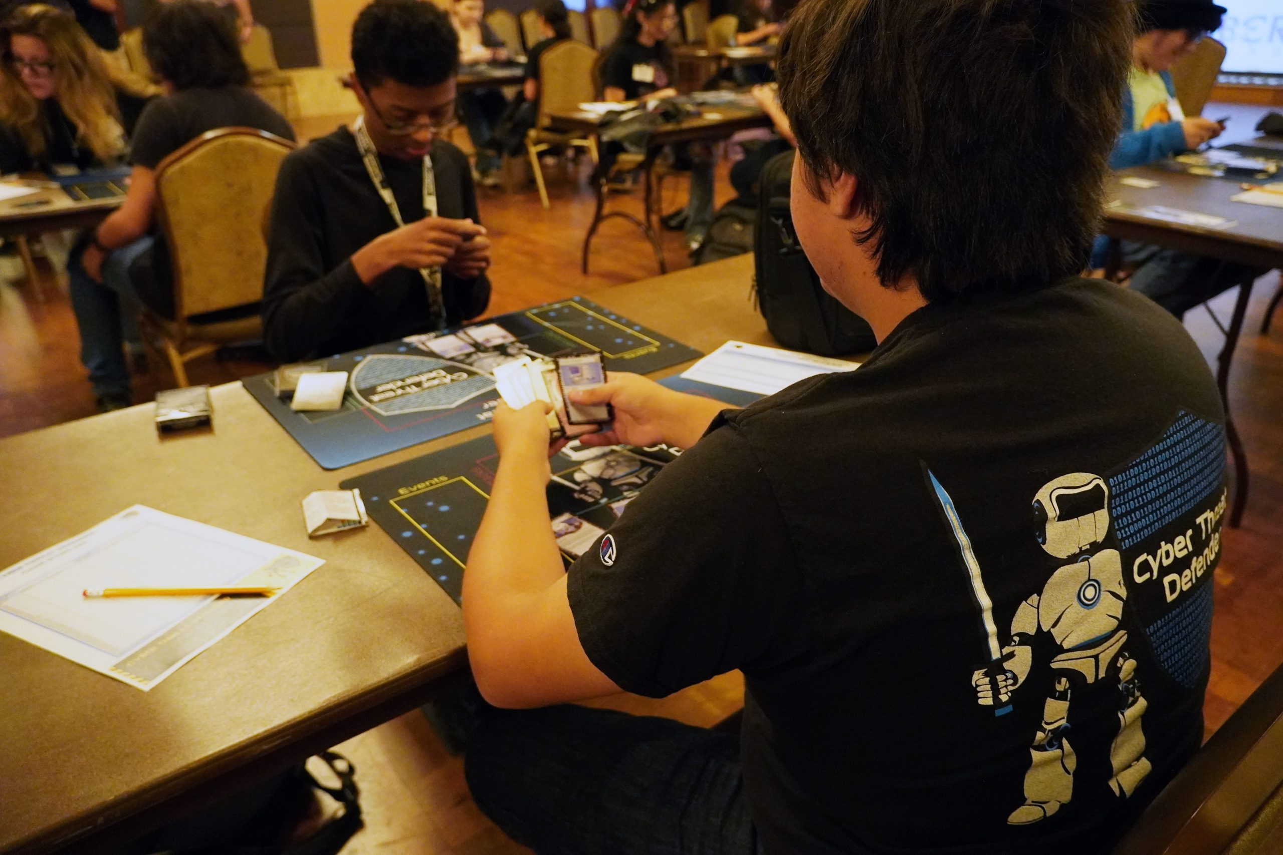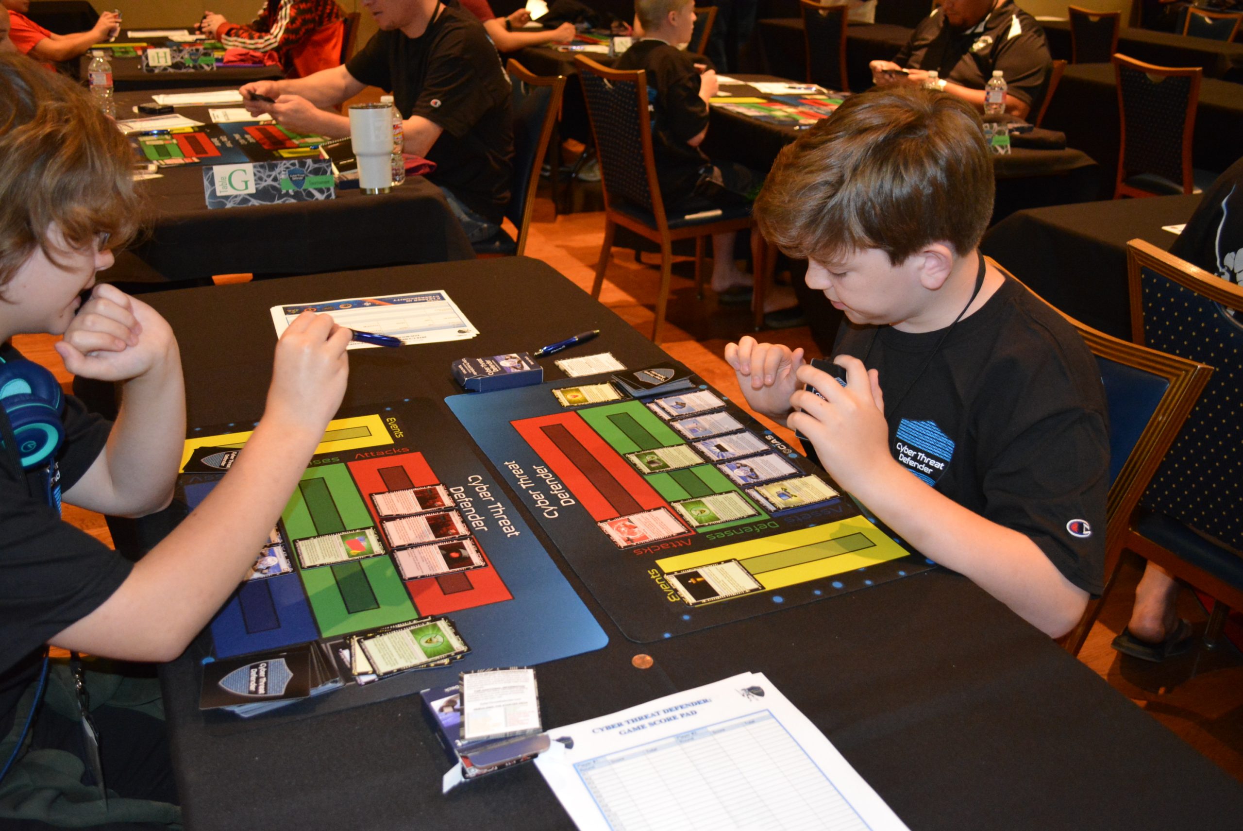 While not required, it is recommended that Cyber Threat Defender game mats be used during tournaments. In addition to it adding a layer of excitement to the environment, mats help participants to keep their cards organized and easier for their opponents to identify cards being played.