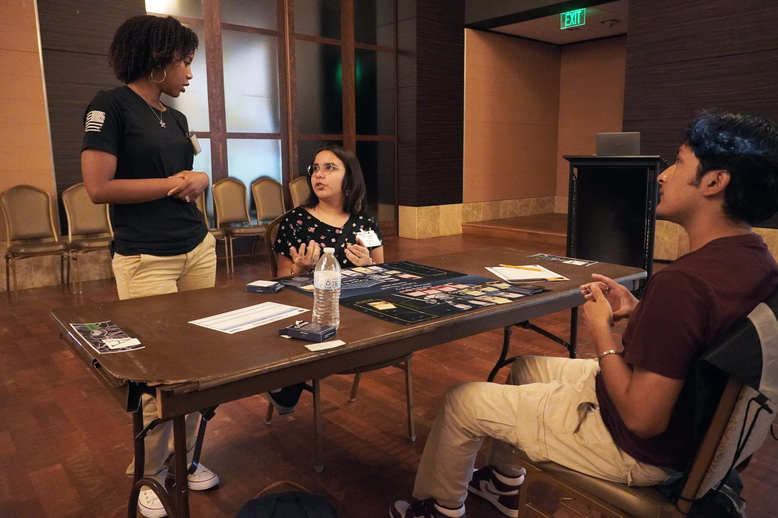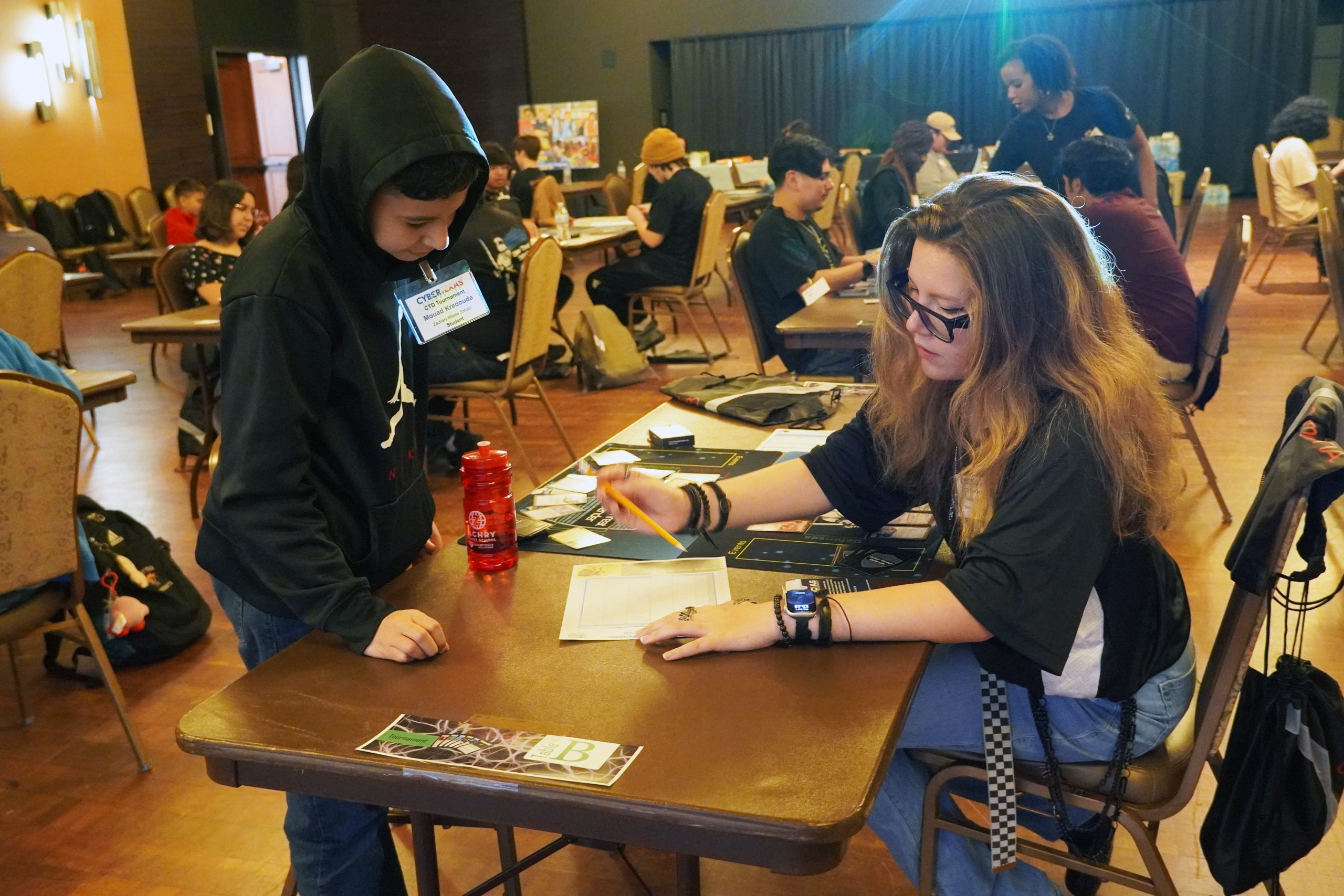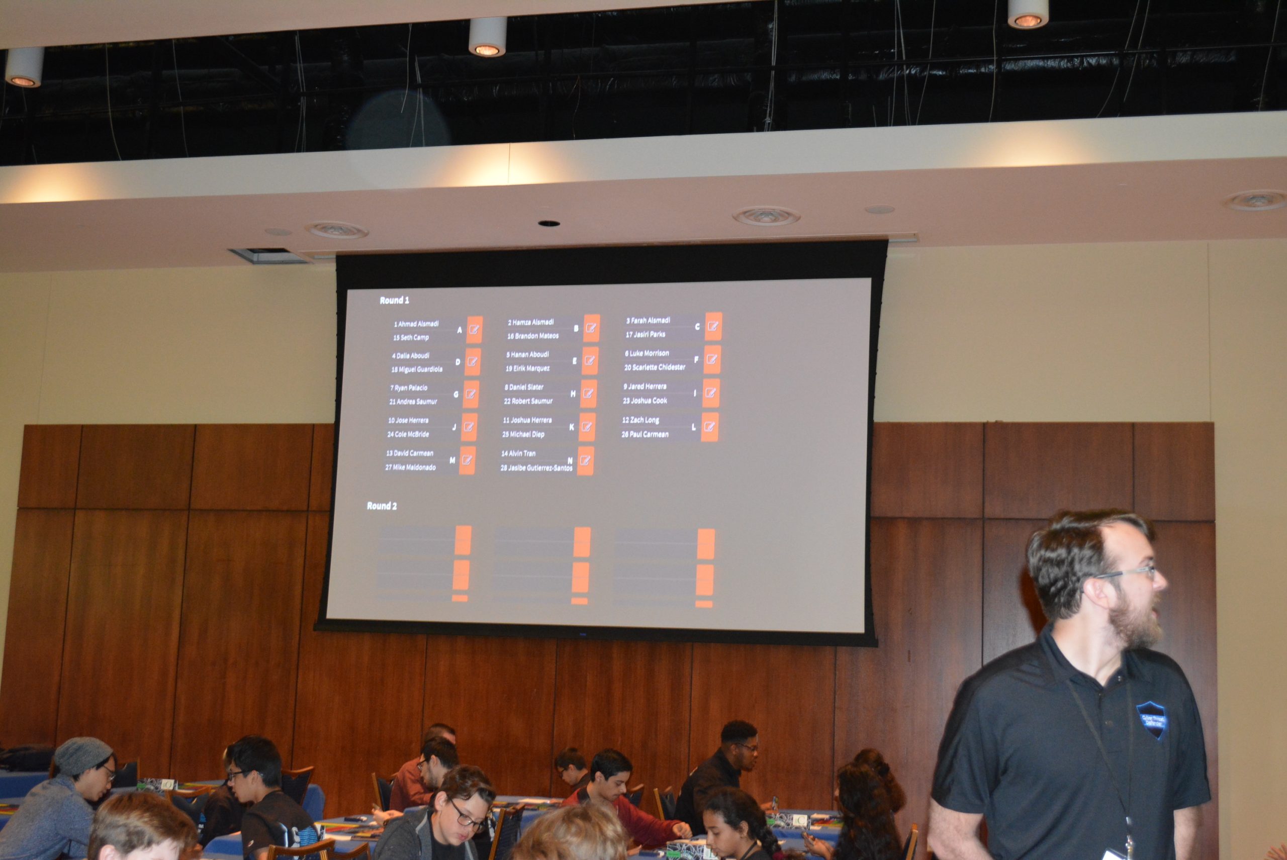 Additionally, identifying tables and seating by number or letter (e.g., table tent cards can help with this) is critical to keeping the event area organized. For example, at the beginning of the tournament, players will be randomly placed – or seeded – into specific brackets to identify what table placement they are to be seated at and which player is their opponent. After each match, players will be re-matched to different opponents based on scores from their previous match. Being able to quickly identify where each player is seated is critical to both the scoring process and overall tournament organization.
