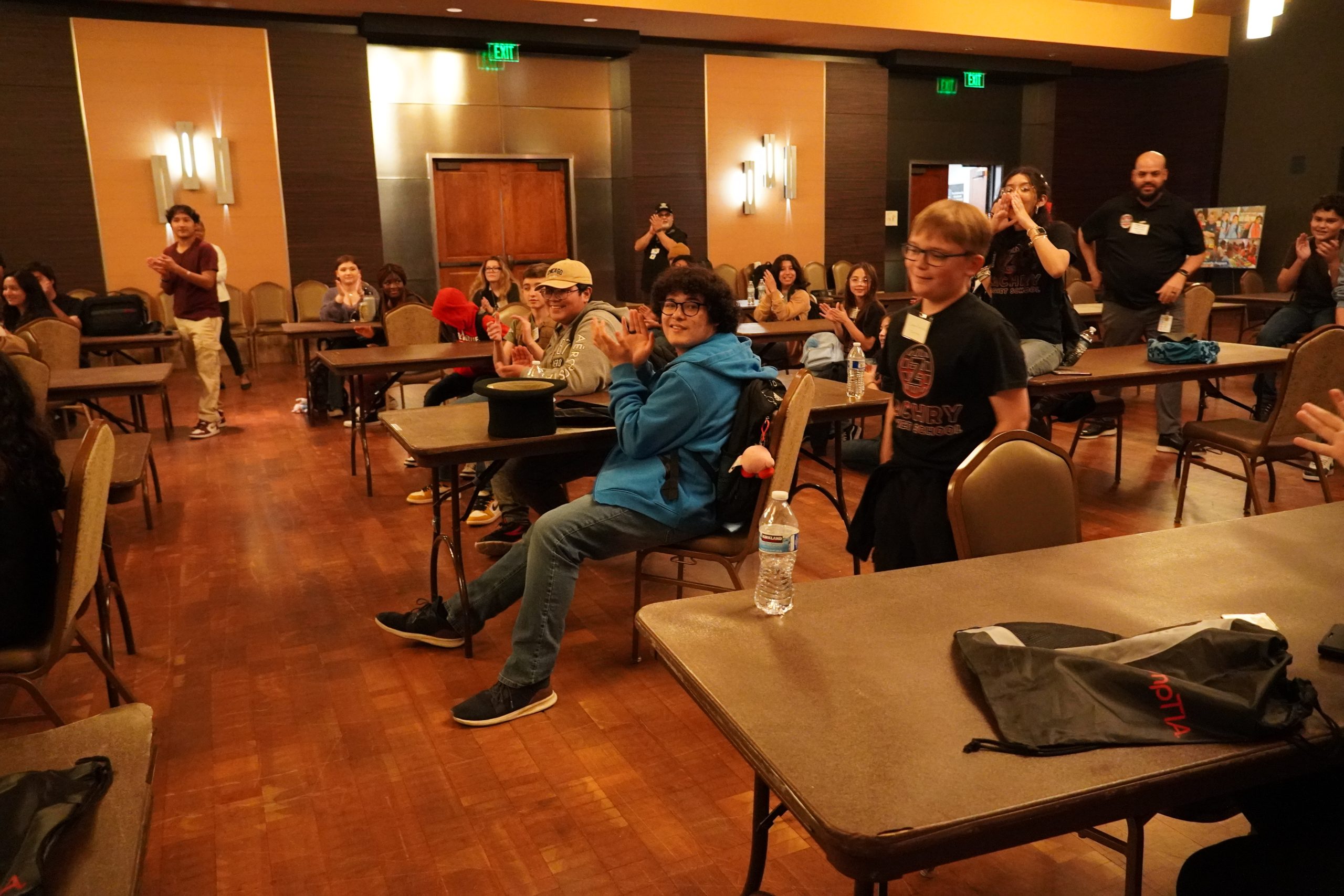 A podium with microphone, as well as a screen (e.g., large monitor or projection screen), also aid in the host’s ability to review the tournament rules and expectations of players before the tournament ends, announce the winners at the end of the event and project table/seating locations with each new match.